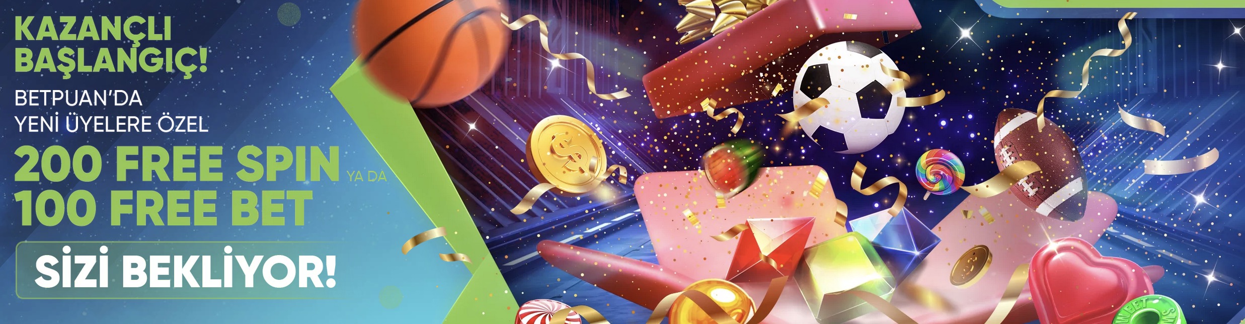 Betpuan’ın giriş sayfasında karşına çıkan görsellere bakınca bile atmosferi hissediyorsun: spor teması, renkli kutlamalar, free spinler, bonuslar… Yeni bir hesap açtığında “boş” başlamıyorsun. Aksine, oyuna direkt avantajlı giriyorsun.